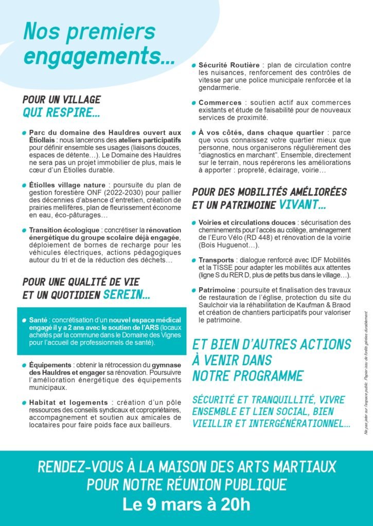 Notre engagement est clair : être présents à vos côtés, défendre Étiolles avec détermination et garantir un avenir maîtrisé pour un village qui reste un village.